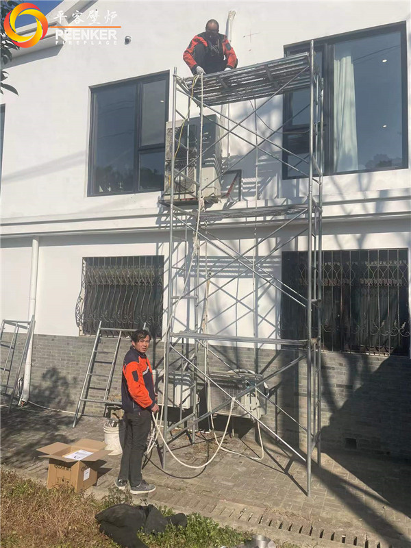 項目介紹:別墅已裝修入住,業(yè)主不想戶外安裝煙囪,所以選擇獨立式火爐加丹麥Exodraft壁爐風(fēng)機(jī)的安裝方式,平客壁爐項目部帶隊上門安裝!