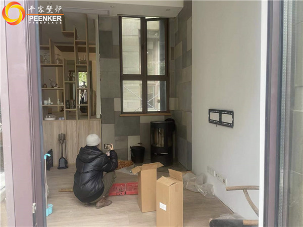 項目情況:客戶別墅已經安裝入住,所以選擇獨立式火爐,因為其選擇位置旁有窗戶,如果直接用頂排,則遮擋窗戶,影響美觀,所以客戶選擇具備背部排煙功能的丹麥Aduro A9獨立式火爐,三面觀火!平客壁爐項目部帶隊上門安裝。