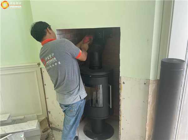 項目情況:別墅有現成的磚石爐膛和煙囪,但是爐膛寬度較小,安裝不了嵌入式壁爐,所以客戶選擇高效率的丹麥Morso 獨立式火爐6848,平客壁爐項目部帶隊上門安裝!