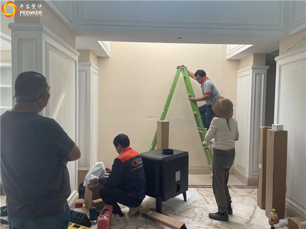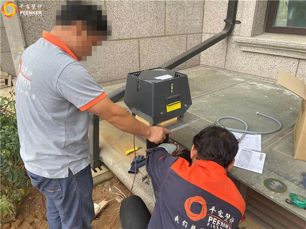 項目介紹:該項目中,壁爐被安裝在地下室天井位置,戶外使用丹麥Exodraft壁爐風機代替戶外煙囪,這是典型的地下室空間安裝壁爐的案例。平客壁爐帶隊上門安裝。