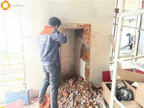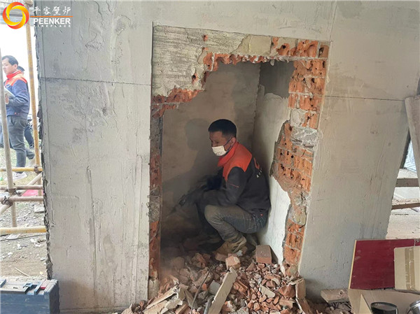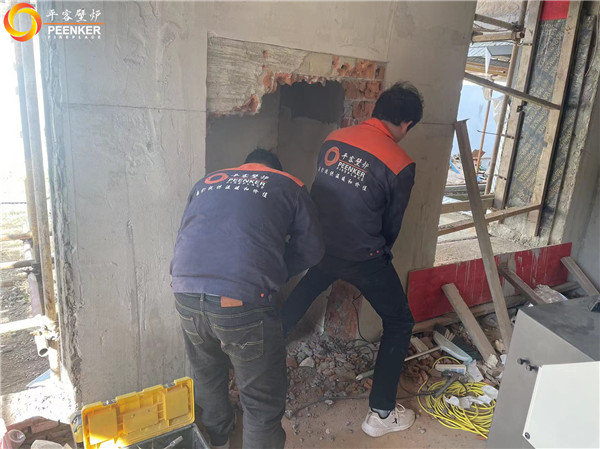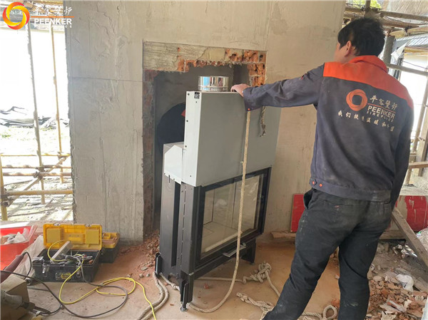 項目介紹:這是一款提拉式爐門的嵌入式壁爐,項目現場有現成的磚石爐膛與煙道,平客壁爐項目部帶隊上門安裝!