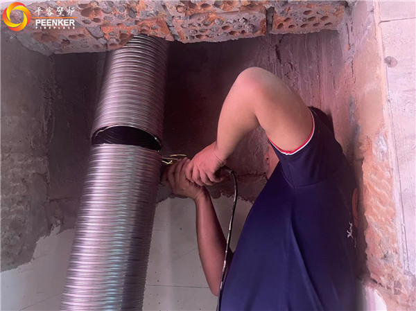 項目介紹:上海圣塔路斯別墅有現成的磚石爐膛和煙道,使用柔性煙管代替不銹鋼煙囪進行安裝,該項目由平客壁爐項目部帶隊上門安裝!