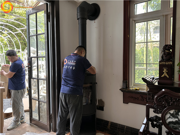 項目介紹:上海浦東金色維也納別墅已裝修入住,客戶想安裝壁爐解決冬季供暖,對已裝修的別墅,通常建議選擇獨立式火爐進行安裝。客戶選擇的這款是丹麥Morso 8893鑄鐵火爐,戶外使用丹麥Exodraft壁爐風機,解決抽力問題。【平客壁爐】項目部帶隊上門安裝。