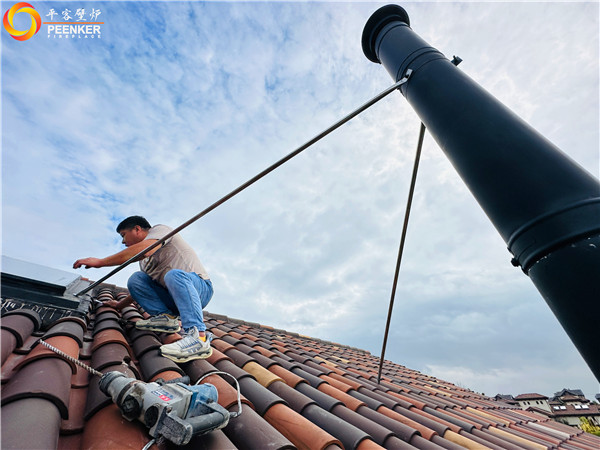 項(xiàng)目情況:該項(xiàng)目位于上海崇明,建筑為獨(dú)棟別墅,客戶選擇是丹麥Morso獨(dú)立式火爐6848,安裝在靠近外墻位置,煙囪穿側(cè)墻安裝,戶外煙囪使用支撐桿固定。由【平客壁爐】項(xiàng)目部帶隊(duì)上門安裝。