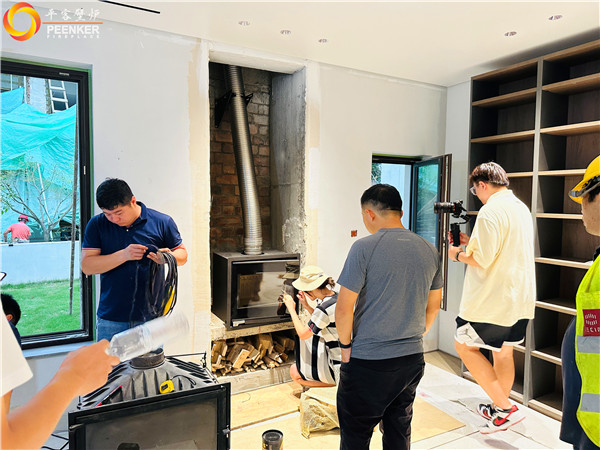 項(xiàng)目介紹:本次的壁爐安裝項(xiàng)目,原先別墅業(yè)主一開始是想自砌磚石壁爐,后放棄,購買了國產(chǎn)的嵌入式壁爐,并安裝完成,但后續(xù)無論是壁爐的使用效果還是外觀美感都達(dá)不到客戶要求。最終選擇我們平客壁爐在售的丹麥Aduro嵌入式壁爐A5型號,煙囪使用來自英國的柔性煙管進(jìn)行安裝,平客壁爐項(xiàng)目部帶隊(duì)上門安裝。