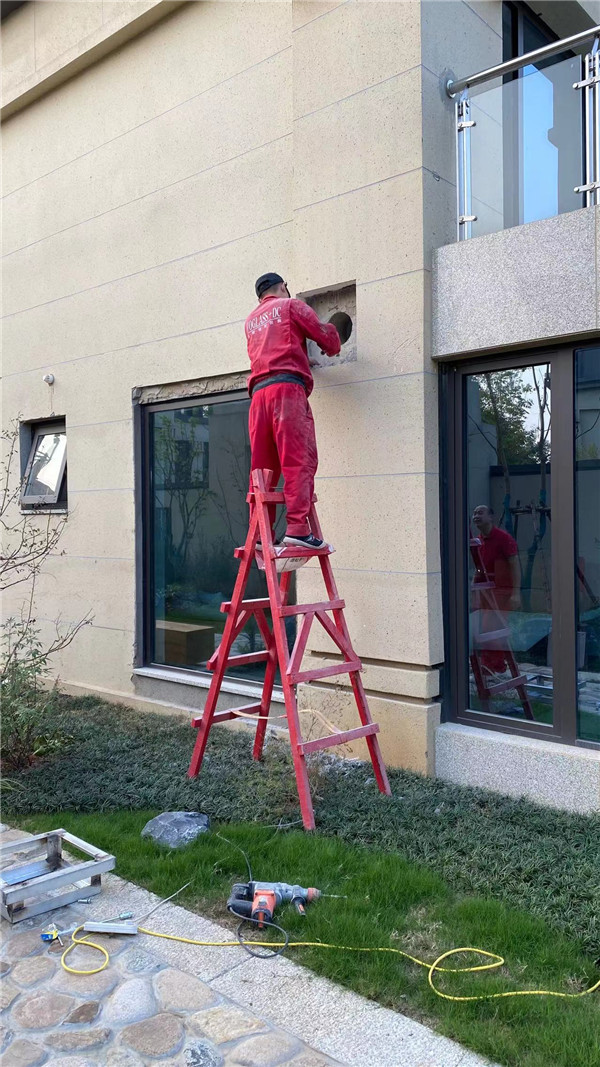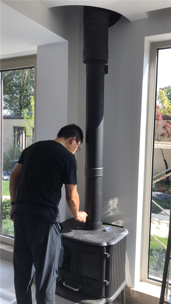 項目介紹:該項目由【平客壁爐】項目部遠程指導安裝,戶外使用丹麥Exodraft壁爐風機代替傳統煙囪,這樣戶外就看不見煙囪。