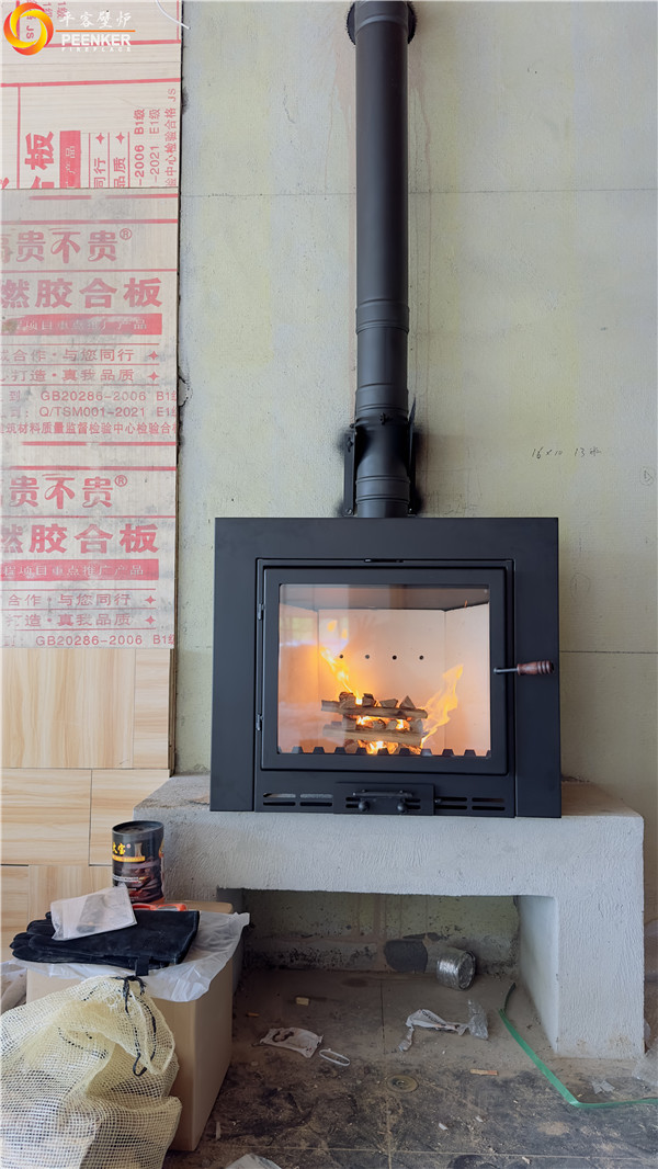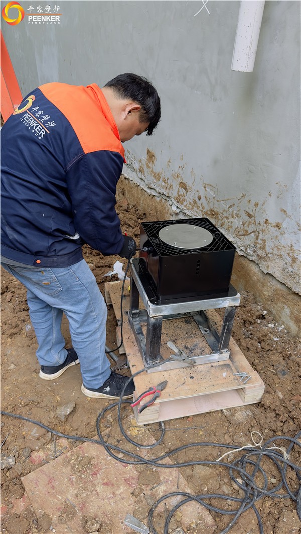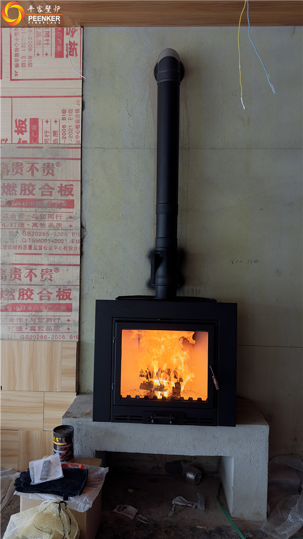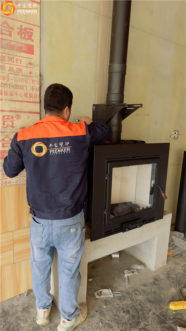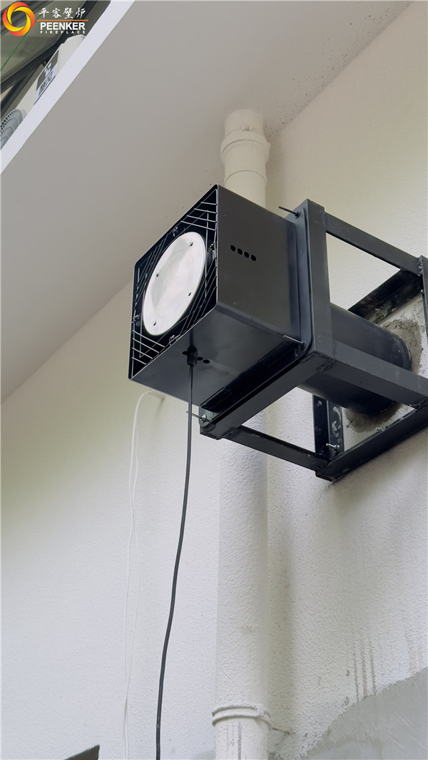 項目介紹:該項目為自建房類民宿項目,戶外因有屋檐阻隔,選擇使用國產壁爐風機代替戶外煙囪,解決抽力問題。【平客壁爐】項目部帶隊上門安裝。