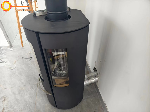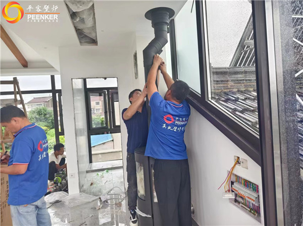項目介紹:該項目為獨立建筑,丹麥Aduro火爐安裝在陽光房中,選配了戶外進風(fēng)組件,因煙囪垂直高度無法達(dá)到不低于5米要求,所以戶外使用壁爐風(fēng)機代替不銹鋼煙囪,解決抽力問題!該項目由平客壁爐項目部帶隊上門安裝。