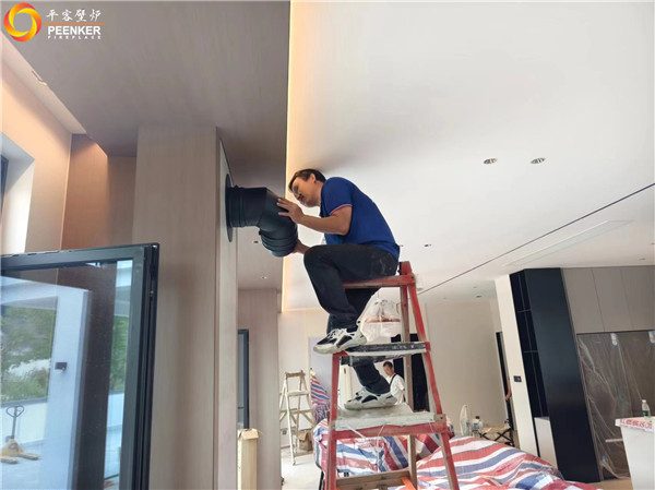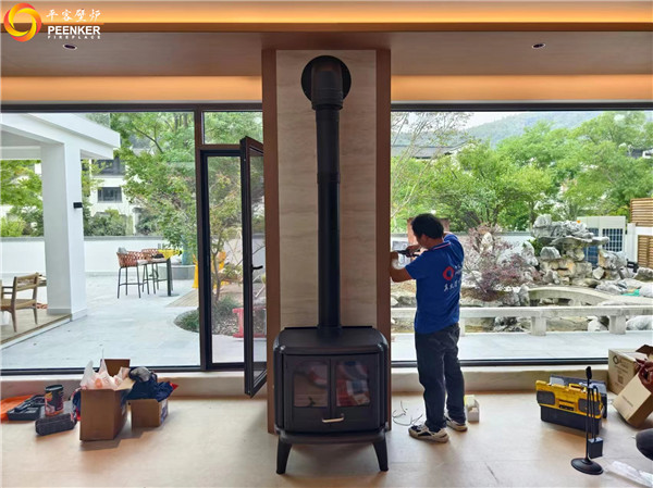 項目介紹:2024年2月29日,為配合現場裝修進度,壁爐煙囪和丹麥Exodraft壁爐風機提前入場安裝;2024年10月12日,業主選購的丹麥Morso 3640對流型鑄鐵火爐,入場安裝。該項目由【平客壁爐】項目部帶隊上門安裝。