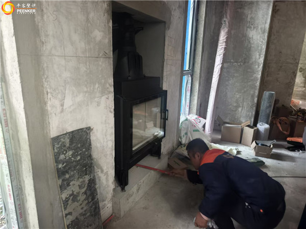 項目介紹:該項目為獨棟別墅,自帶磚石爐膛和煙道,客戶在眾多品牌中選擇丹麥Morso嵌入式壁爐進行安裝,煙囪安裝在磚石煙道內直達煙囪頂,該項目由平客壁爐項目部帶隊上門安裝。
