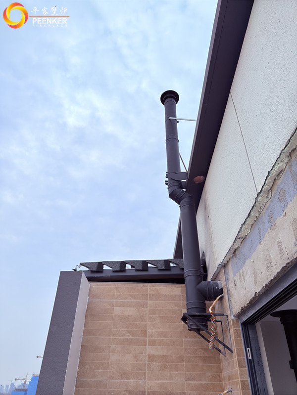 項目情況:該項目位于南京江寧區,壁爐安裝在一樓客廳角落,煙囪出側墻到戶外,豎直加高過屋檐。由平客壁爐項目部帶隊上門安裝。