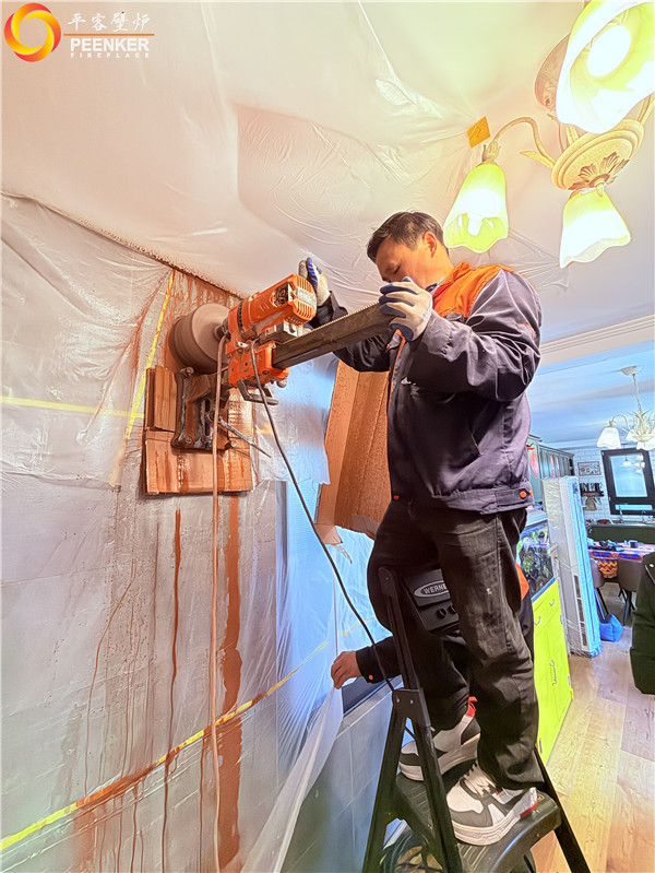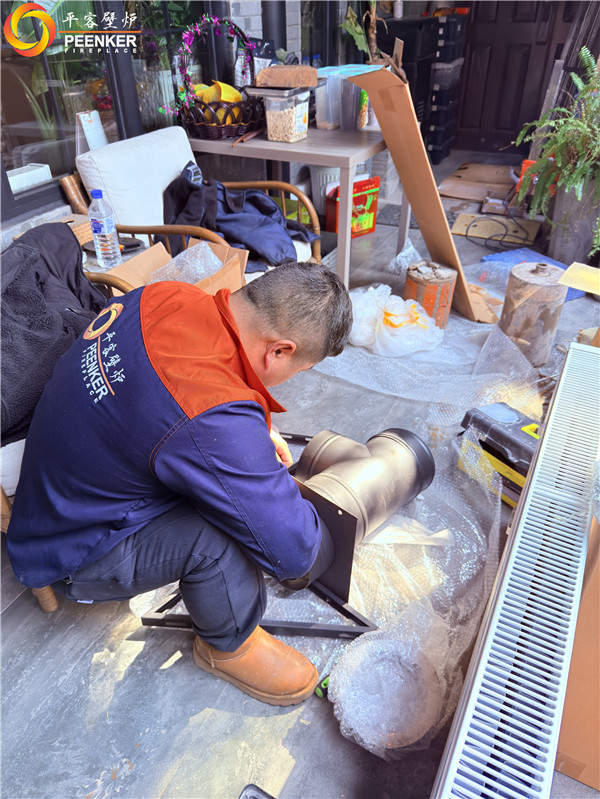 項目情況:應業主要求,對項目所在城市和名稱進行保密,所以這里不便做過多說明。別墅已裝修,煙囪穿側墻出戶外,由平客壁爐項目部帶隊上門安裝。