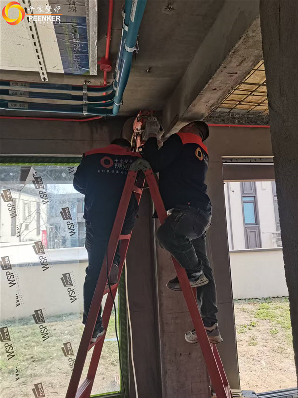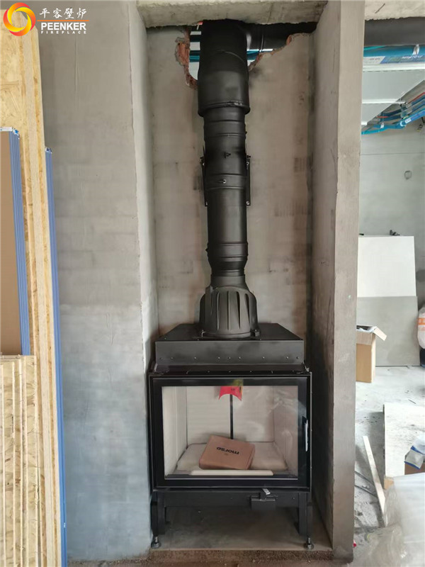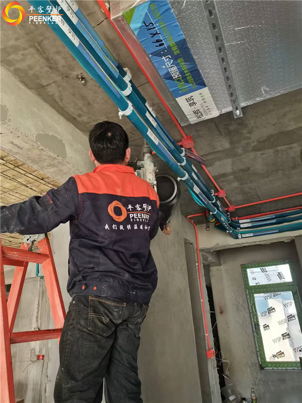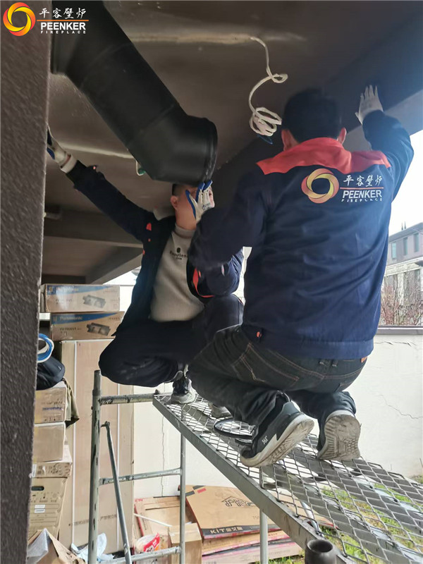 項(xiàng)目情況:項(xiàng)目位于宜興陽羨美廬翰墨軒別墅小區(qū),壁爐安裝在客廳位置,煙囪因橫向過長(zhǎng),戶外使用壁爐風(fēng)機(jī)解決抽力問題,由平客壁爐項(xiàng)目部上門指導(dǎo)安裝。