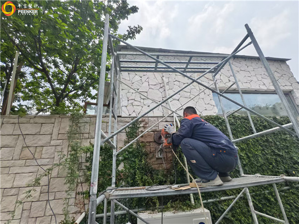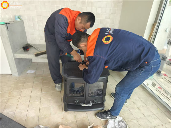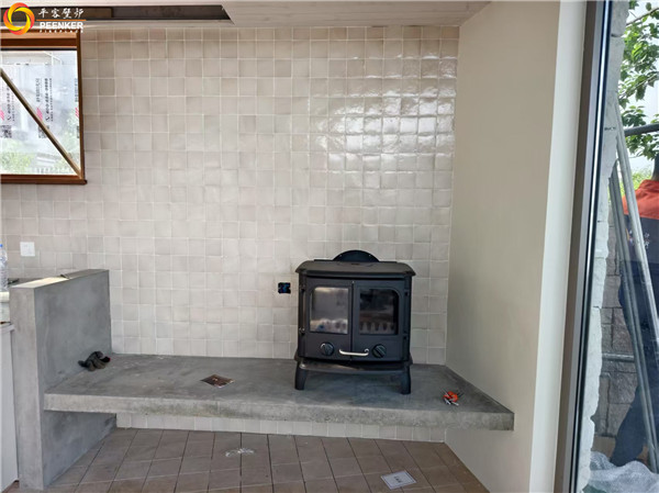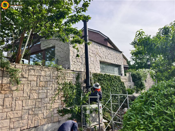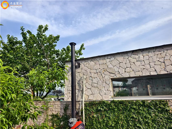 項目情況:項目位于南京佳湖綠島別墅小區,壁爐安裝在靠外墻位置,煙囪選擇背排出側墻到戶外加高。由平客壁爐項目部帶隊上門安裝。