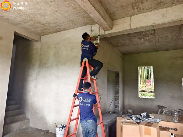 項目情況:該項目為自建獨棟別墅,位于安徽省池州市九華山,壁爐安裝在客廳,煙囪穿閣樓斜頂出戶外,由平客壁爐項目部帶隊上門安裝。