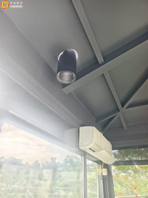 項目情況:該項目位于鎮江紫金7號別墅,壁爐安裝在庭院陽光房中,因壁爐煙囪垂直高度達不到5米要求,戶外使用壁爐風機解決抽力問題。由平客壁爐項目部帶隊上門安裝。