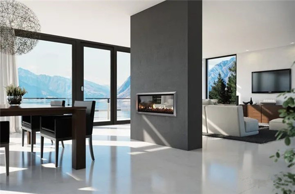 雙面壁爐非常適合用來做分割空間的隔斷結構,可以在壁爐兩側設計不同的功能區:客廳——餐廳,客廳——起居室,也可以是起居室——臥室,臥室——浴室,甚至是客廳——庭院……,通過巧妙使用雙面壁爐能夠搭建出很多讓人耳目一新的空間布局。我們搜集整理了一些最新的雙面壁爐裝修案例,供朋友們借鑒參考,希望對大家有所啟發。