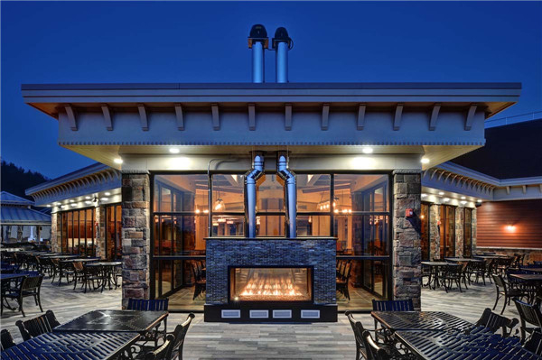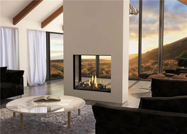 雙面壁爐一般安裝在空間的中央區域,如果煙囪垂直向上從屋頂穿出,要考慮對樓上空間的影響(如果有二樓的話),并做好屋頂開孔后防水修復工作;如果選擇讓煙囪在天花板內橫向走管穿出外墻排煙,那就要用到專用的壁爐排煙風機。無論哪種情況都要首先確定雙面壁爐的擺放位置,并以此為起點考慮空間的功能布局。
